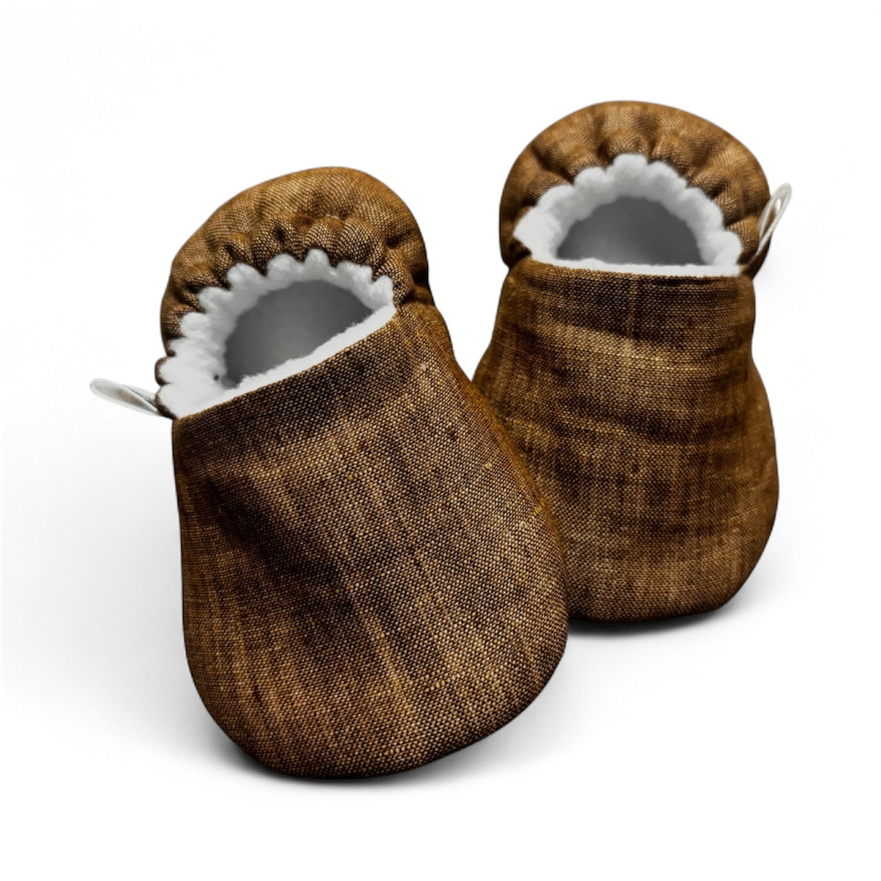 Handmade with love. All moccs listed are made soft with cotton fabric and inner lined with fleece unless otherwise stated. Each baby mocc heel is designed with elastic to keep those tiny feet comfy and snugged.